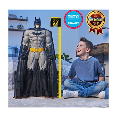 LIFE-SIZE BATMAN: Batman is over 33 inches tall! Includes exclusive 4” Batman action figure to add to your Batman collection! Gear up with 9 exclusive Batman accessories, including grappling hook, armor, and more!