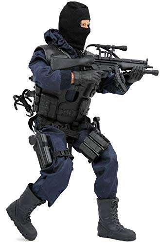 Set includes; 1 SWAT action figure in uniform, rifle, silencer, vest, ammo, mask, shotgun, radio, bayonet W/ case, riot shield,
