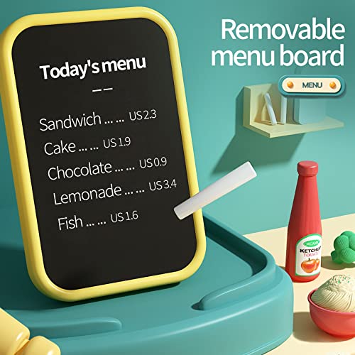 [Water Cycle and Menu Board] Play Kitchen Set is designed with automatic water circulation.Little chefs can wash vegetables and fruits in the sink before preparing meals,and wash kitchen utensils and dishes in the sink after cooking.Handwriting menu board,you can write or draw today’s menu.